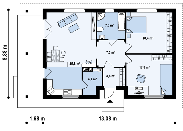 Z55 dk Yaşam alanı 94,6 m² Toplam alan 94,6 m² Çatı eğiminin açısı 30 ° İnşaat alanı 114,1 m² Hacmini hesaplama 264,7 m³ Yükseklik 6.34 m